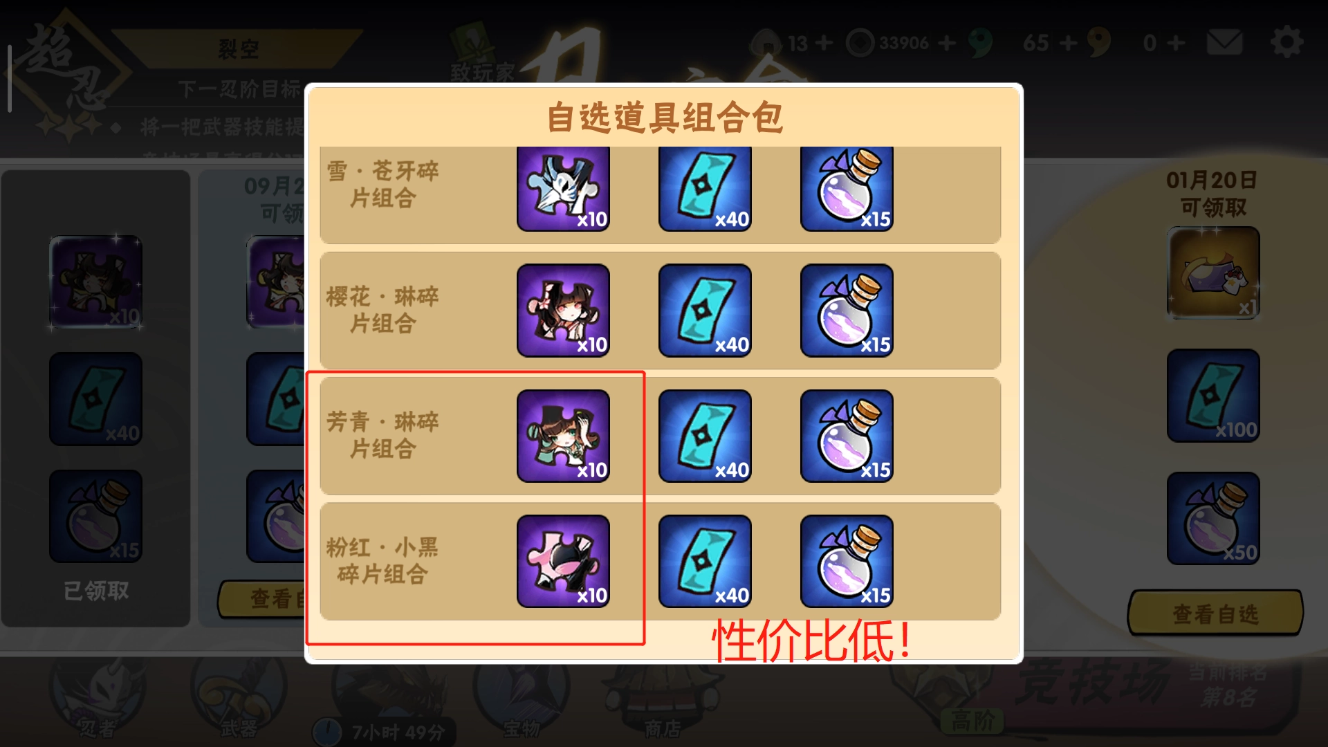 进来之后发现一共有两部分,左侧边栏一共五个,每个都可以获得10个皮肤碎片、40张外观券以及15个幻术之尘。