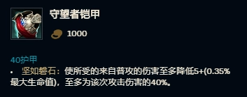 守望者铠甲的减伤效果从0.5%最大生命值调整为5点固定值加0.35%最大生命值,这一改动显著增强了携带者的抗伤能力,使得AD英雄在对抗坦克时的输出压力进一步增大。