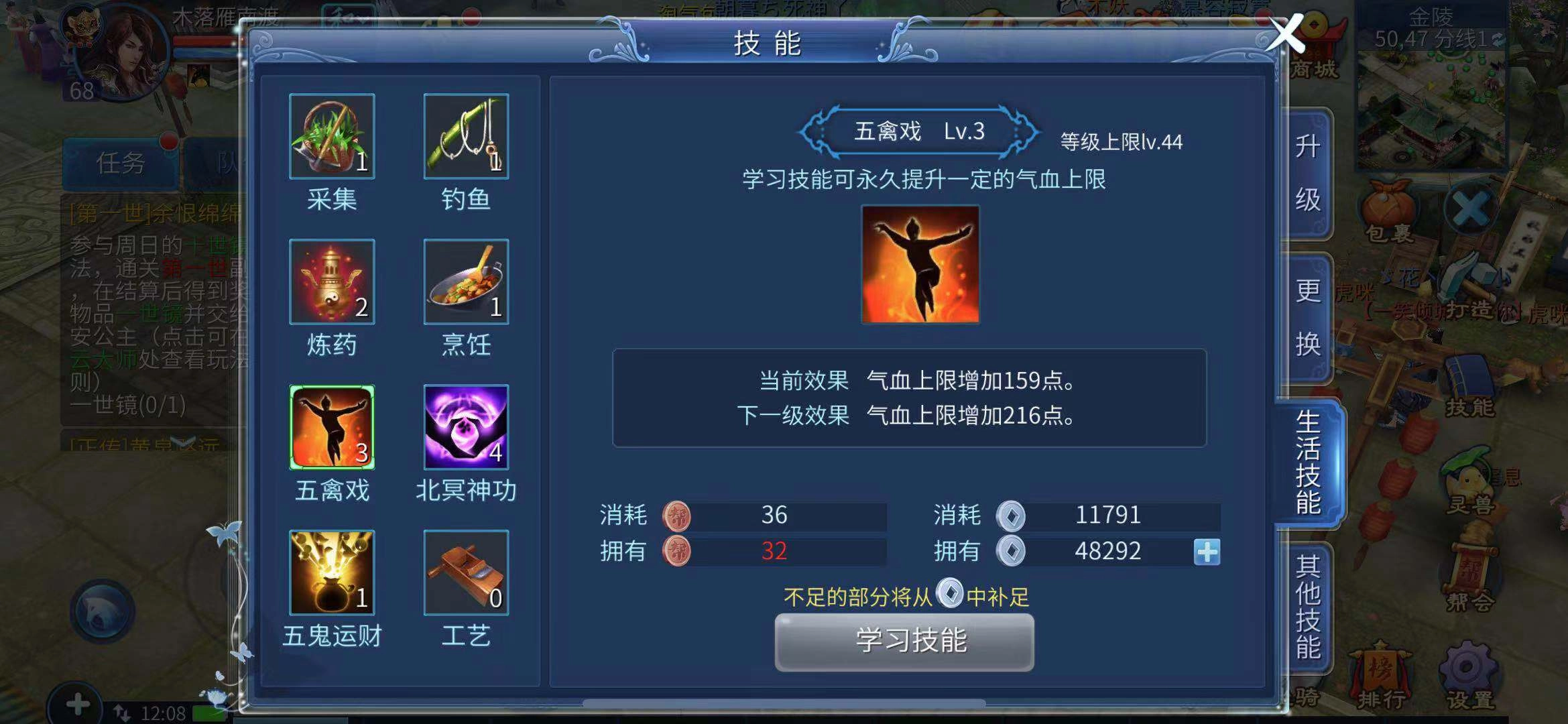 在三十级之前,玩家仅能掌握最基础的几项生活技能,且需前往宋应星处学习,不仅繁琐,实用性也较低;唯有先达到三十级,玩家才能开启正式的生活技能学习与升级进程,而即便升到三十级仍未足够,还需加入帮派方可继续深造生活技能。