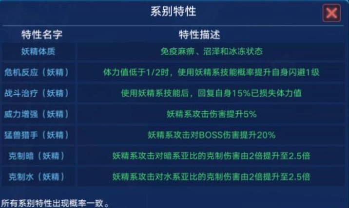 当某些局部属性无法带来相似的恢复能力增益时,可以选择带有“豁免局部负面效果”特性的类别。就像PVP中的强势角色应龙,其常用的系别特征是妖精体质,类似的属性还有精神力、钢铁身躯等。