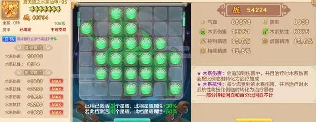 分析:水灵甲的通用性较强,毕竟灵甲重设操作相对麻烦(所有职业都能使用水甲,其他属性的灵甲适用范围则比较有限)。水系伤害不仅能提升输出能力,还能起到减伤效果,同时增强了生存与输出表现。灵符和铂金这两个部位至少要选一个木属性,以此来增加恢复能力。道教晶石可以混搭土、水、火三种属性:若追求高命中就多搭配土属性,若想提升暴击(比如玩爆医流派)就多选择火属性,若侧重伤害则多用水属性,具体可根据当前实际需求进行微调,尽量保持属性平衡,不必只堆砌单一的极端属性。要是走暴医流派,那么灵甲、灵符和铂金这几个部位可以选择一个使用火属性。全能孔的晶石必须选用防御类的,这样能显著提高防御能力。