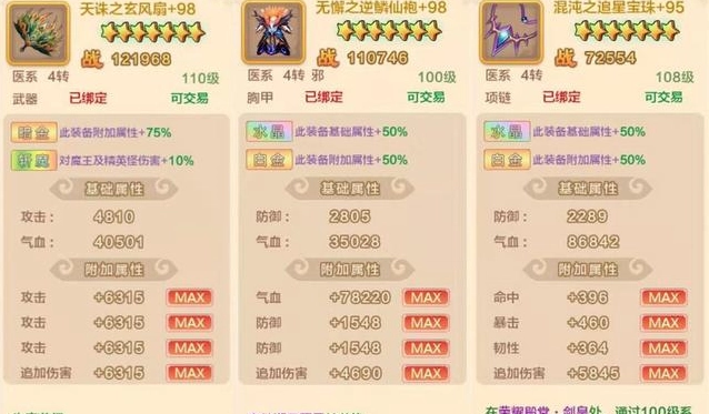 分析:天诛加很多攻击和追加伤害,很符合补充输出不够的医生,忠犬攻加命顺江爆击,爆医最佳选择。胸甲建议无懈,能够增添很多追加伤害,而恪守带来的韧性属性是医生不太需要的,项链选择好汉和混沌都可以,混沌加爆击,爆医先行思考。