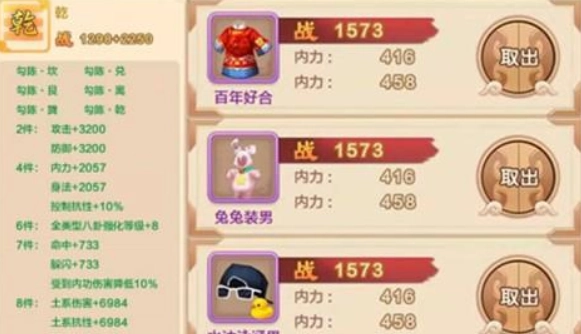 气功四种预设:洗髓易筋,太极心法,回天有术3个必带气功,残剩2个气功依据局面选择。