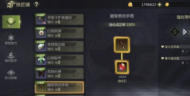 想要强化继承,关键在于充能值。玩家打开游戏后,能在装备下方看到一个明显的数值,要是强化失败,这个数值就会发生变化,等累计到一定数字时,就能进行强化继承了。