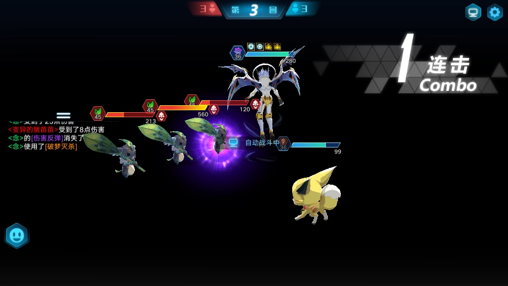 这里给大家推荐辅助亚比选木系的花冠公主,开场先给自己套盾,几个回合下来防御就能叠得很高。接着用三技能降低虚空之主的攻击等级,最后选光系输出亚比来收尾收割就可以了。