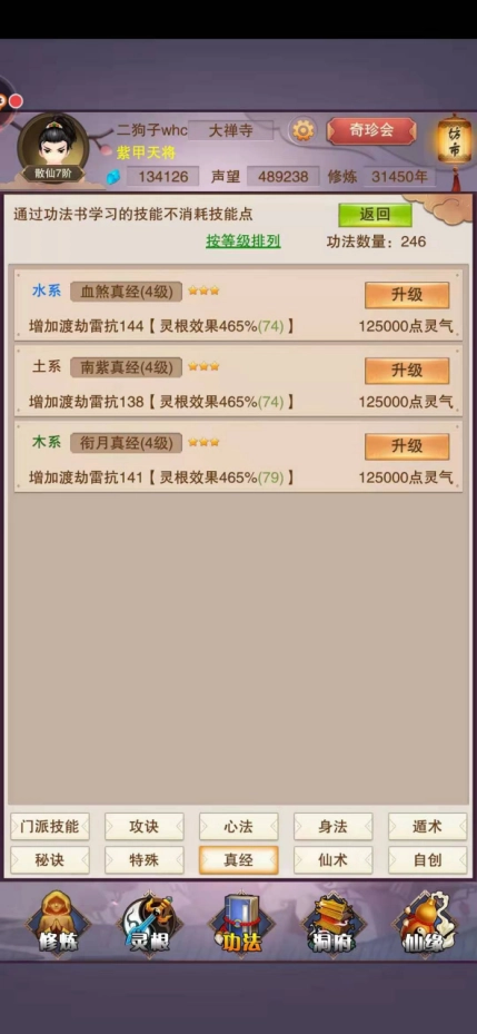 玩家若不想依靠服用丹药渡劫,还能通过另一种方式提升渡劫成功率——在坊市购买各类真经,以此增强自身的防雷属性。