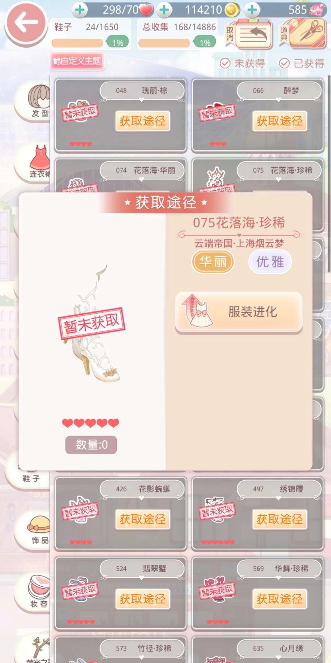 鞋子推荐由原始服装“花落海”经过两次进化而来的“花落海·珍稀”。这是一双兼具华丽与优雅风格的五星鞋子,充满了宫廷歌舞会的韵味。