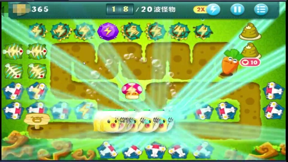 前期好好积累萝卜,并且采用鱼骨头以及弓箭等强力攻击方式就能够简单的通过这关。