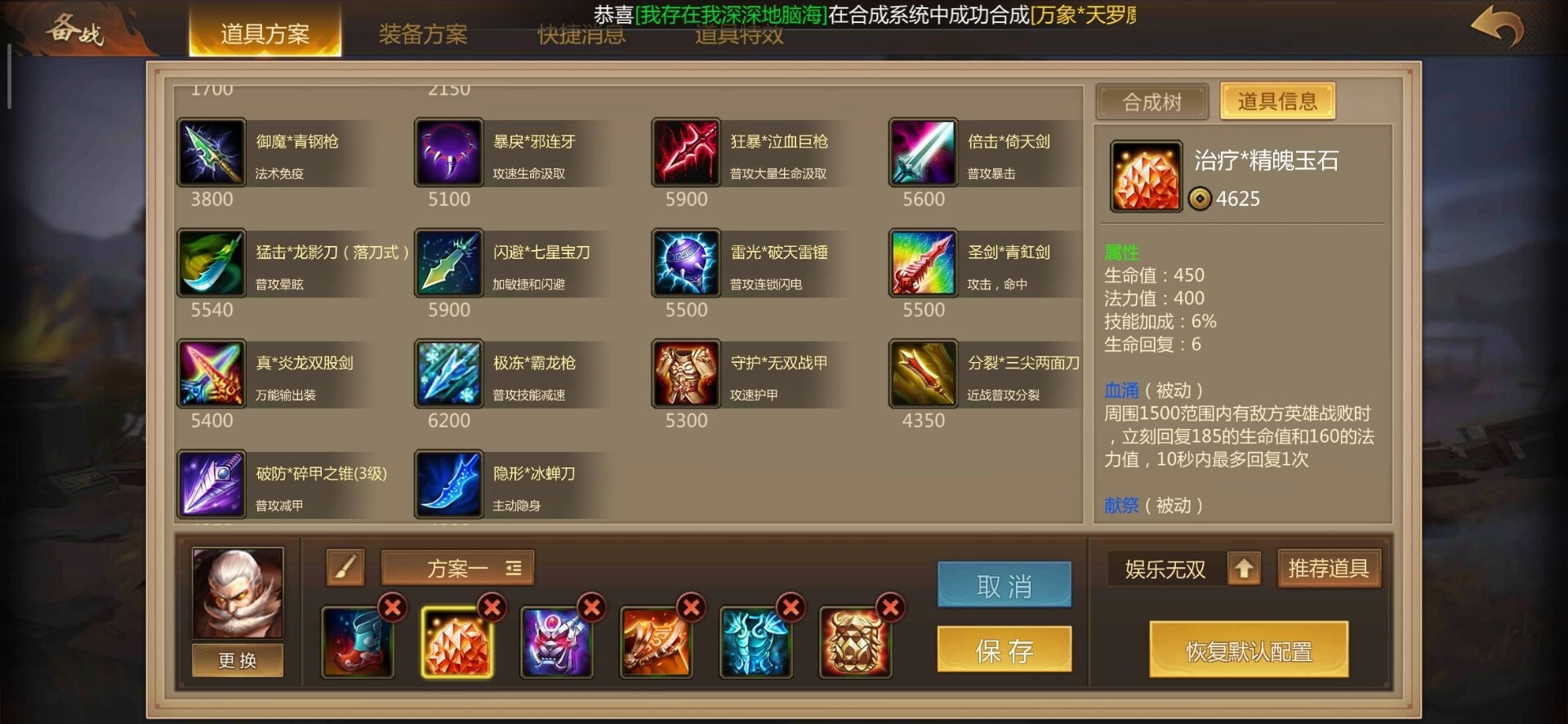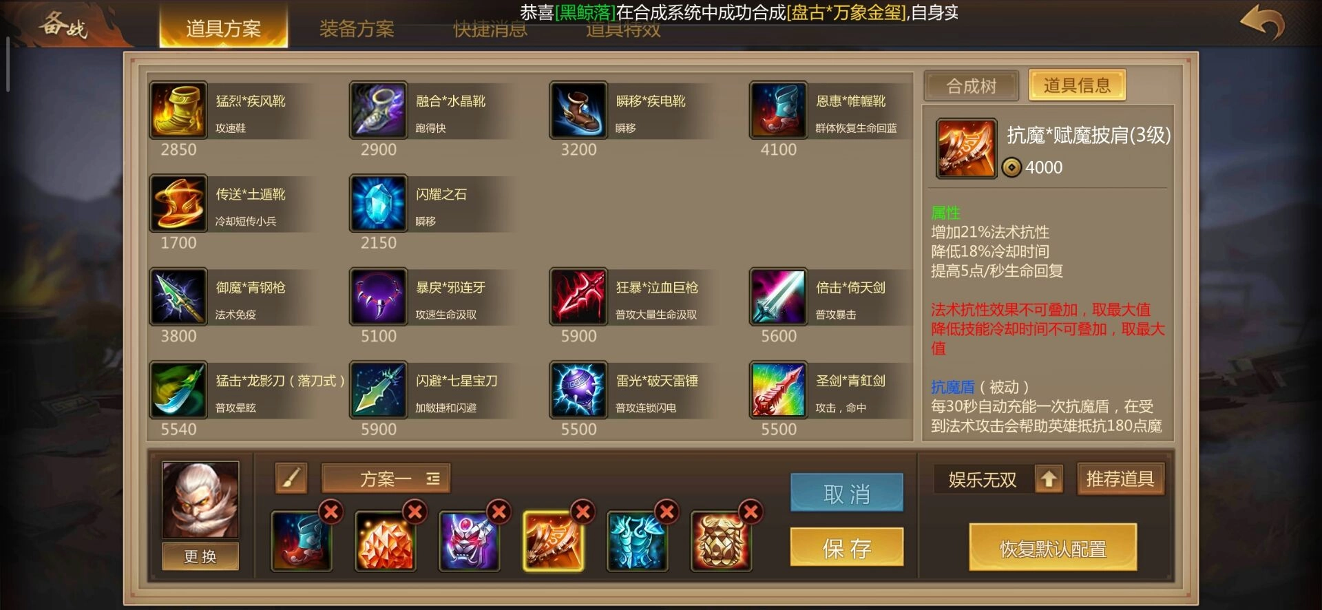 这是件性价比超高的装备,前期能为黄盖提供大量移速、护甲、法力值和属性加成,甚至带有主动回血技能,能在危急关头奶活自己和附近队友。