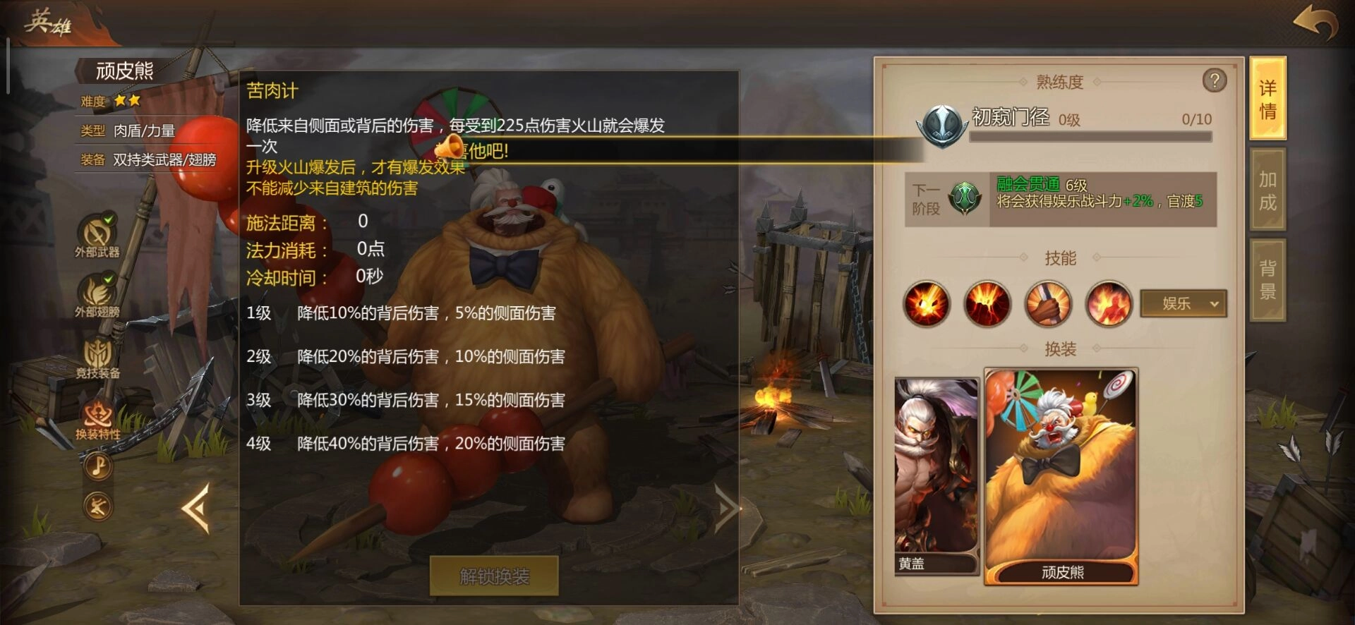 黄盖在游戏中是肉盾型角色,输出表现不算突出,但其扛伤能力却鲜有英雄能及,尤其是他的三技能“苦肉计”,能大幅减少背面和侧面所受伤害,因此试图留住逃跑的黄盖或偷袭满状态的黄盖,都不是明智的选择。