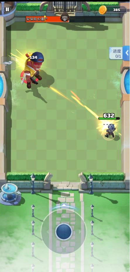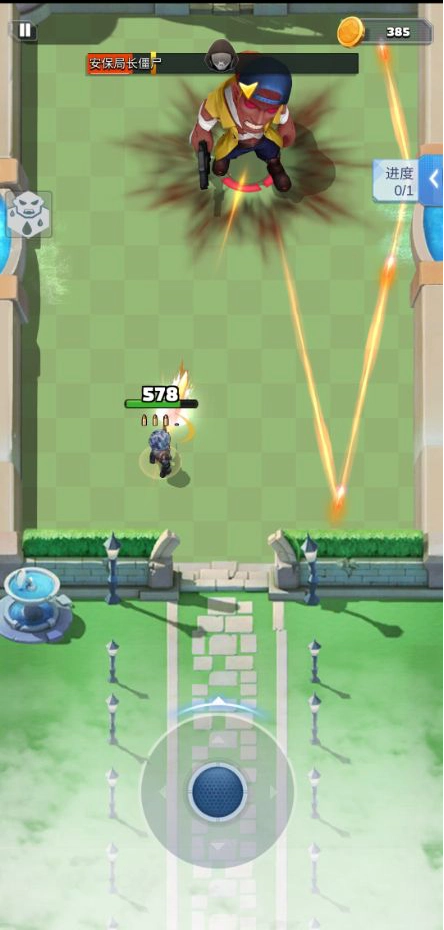 首领的血条在上方清晰可见,到了这个阶段就无法再升级选技能了,因此走位和站位非常关键。游戏设定要求我们必须站立才能射击,所以刚进入射程时先打一发输出,之后就要躲避首领的攻击,这时候千万不能贪刀。