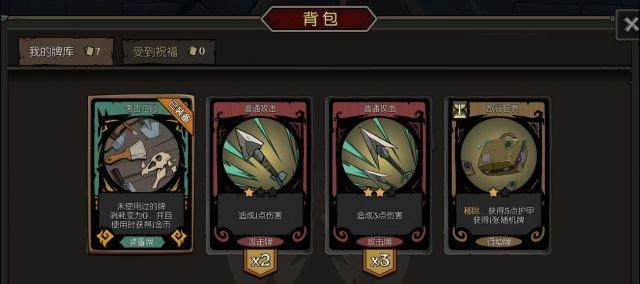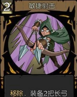 这里要重点强调的是BOSS掉落的【芒刃穿心】和(BOSS卡无法通过商城复制),【芒刃穿心】的特效是造成2点伤害五次并抽2张卡,无论是单次伤害还是这2张卡都能提供1点动力,能明显看出这张卡的超模程度有多夸张。而【双长弓】的特效是装备2把(使用行动牌时造成1点伤害),双长弓搭配奶酪陷阱(装备伤害+1)或者剑术训练(造成伤害+1)就相当于加特林重机枪,这是用过的人都懂的强力搭配。