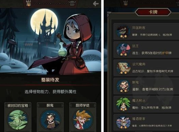由GiantGames打造的独立单机卡牌构筑冒险游戏《月圆之夜》,玩家可选择小骑士、小女巫等七种职业,深入神秘黑森林追寻失踪的外婆;也能通过小红帽日志,重温儿时与小木匠一同展开的城堡冒险。探索途中,玩家将遭遇各类随机事件与剧情,收集对应职业的专属卡牌和祝福,挑战上百种特色怪物,最终揭开黑森林与城堡深处的秘密。近期,游戏新增了契约师职业(月圆之夜玩法)与小游侠(小红帽日志玩法),同时大幅优化小红帽日志的游戏机制,加入大量新卡牌、怪物、祝福、拼图,以及多项数值平衡调整。接下来,小编将为大家带来该版本新增内容的体验分享~