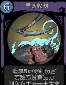 这张卡的特效是在自身回合受到伤害时回复1点生命值,对于依靠血量释放技能的契约师来说,它在前期的恢复效果十分宝贵。两张能量吸收就能无损耗地释放大部分法术,面对部分反伤怪物也有出色的克制作用。这两张卡与魂魄收获(当对手没有法力值时,削减其一半以上的生命值,最高60点)共同构成了契约师的核心关键卡牌。无论是伤害型打法还是过牌循环流都能灵活搭配,而且这三张卡在契约师的任意流派中都能发挥作用。