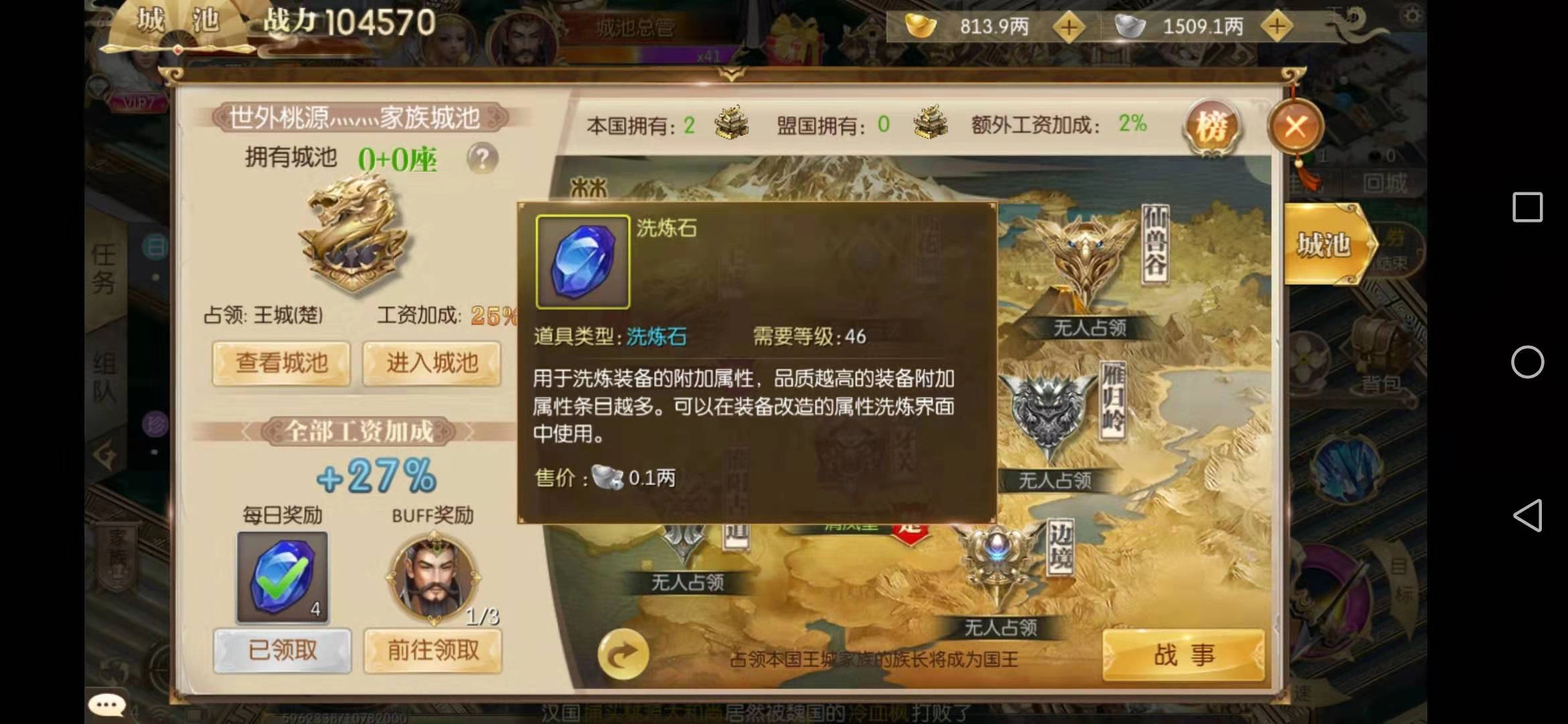 拿小编自己的家族来说,拿下王城之后,每天都能领取10个洗练石,还能获得一个提升3%攻防属性的BUFF,这待遇真的挺不错的。
