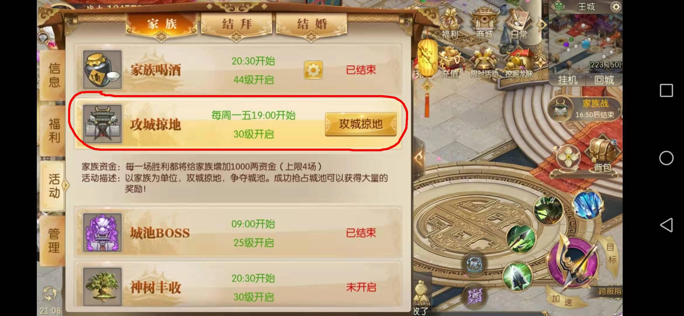 其他家族要是想夺取城池,城主该如何应对呢?其实在家族活动里,有个名为“攻城掠地”的活动。活动中,家族族长能够挑选一座城池发起宣战,一旦宣战成功,系统便会组织双方展开城池攻防战,最终获胜的一方将成为新的城主。