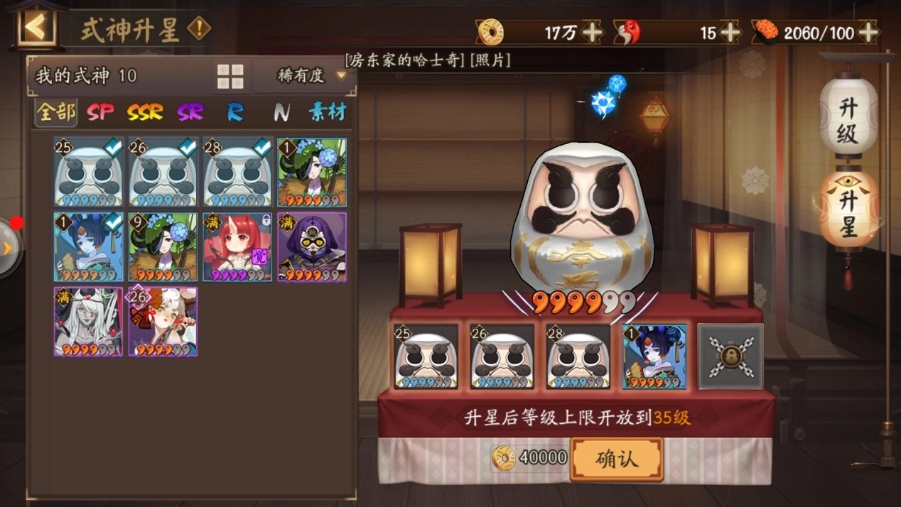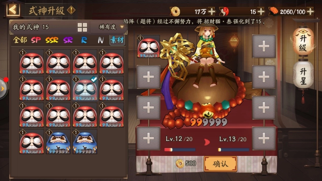 这样就不难看出其实招福达摩养到4级吃是最划算的哦!要是你招福达摩不多,可以先放结界里养到4级或者带着他刷副本到4级再吃他们。