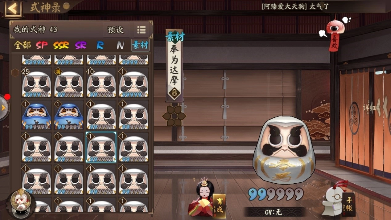 细心的小伙伴肯定发现大吉达摩是达摩里体型最大的吧?哈哈~这么大的体型也不是白长的,大吉达摩能给式神提供巨额的经验哦。