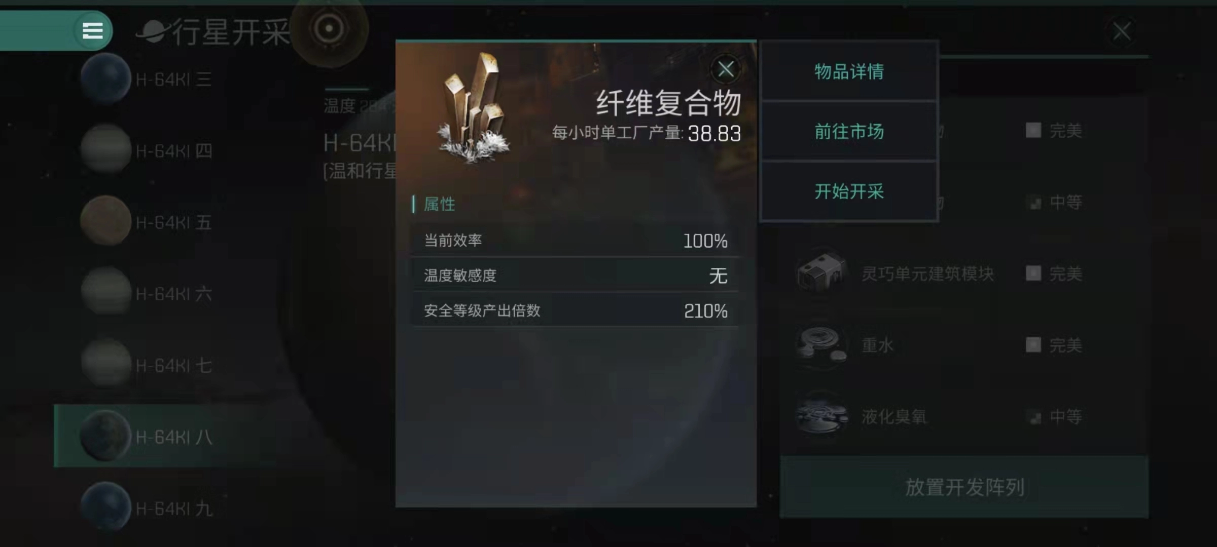 开采的产物正如前文所述,需要前往不同星域开采不同行星,其产物类型、每小时产量、产出倍数以及物品售卖价格均存在差异。