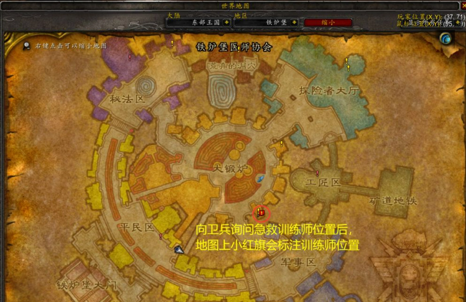 想学习这个职业的话,得先找到游戏里负责教授这项技能的急救训练师。要是对地图不太熟悉,小伙伴们可以去问问自己主城的卫兵,他们会告诉你具体位置,问过之后,这个位置就会在地图上标记出来啦。