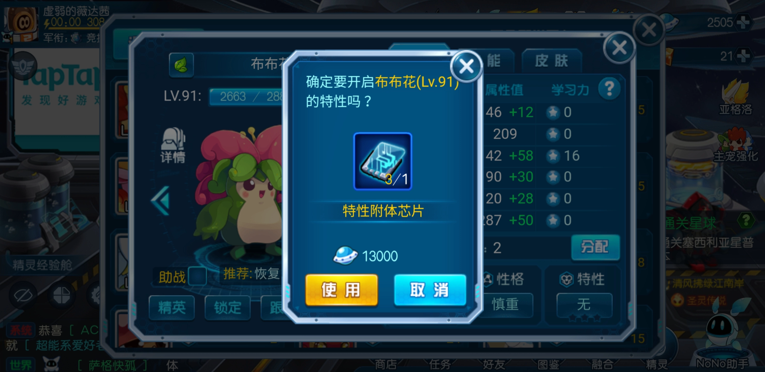 玩家还可以给每个精灵开启特性,当玩家精灵和特效相匹配时可以发挥最大功效,玩家可以通过特性改造芯片来重置特性。