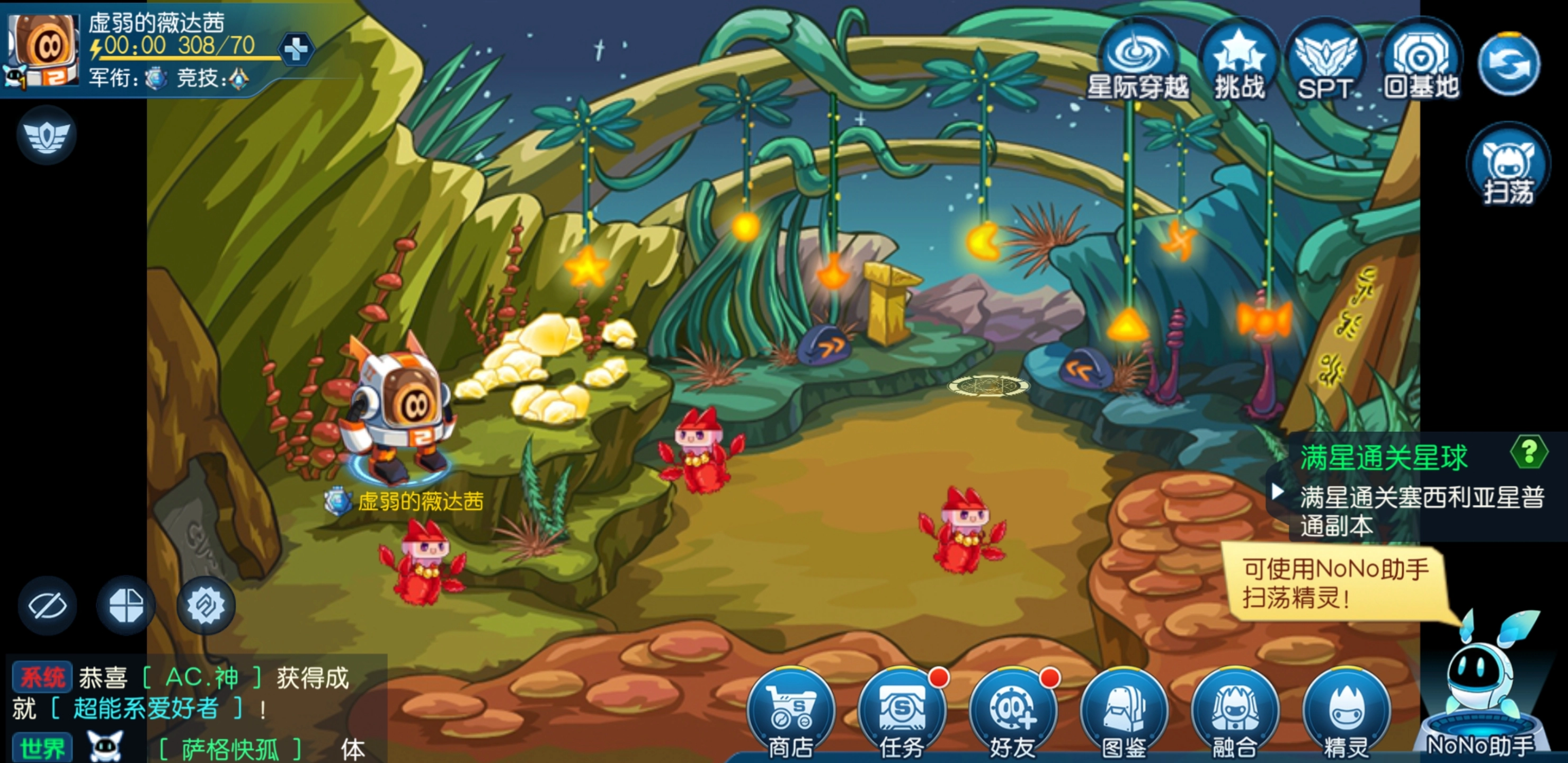 勇者之塔能够让精灵提升等级,不过每次仅能安排一只精灵参与挑战升级;当玩家的超no等级达到8级后,就可以通过一键扫荡的功能来节约时间。