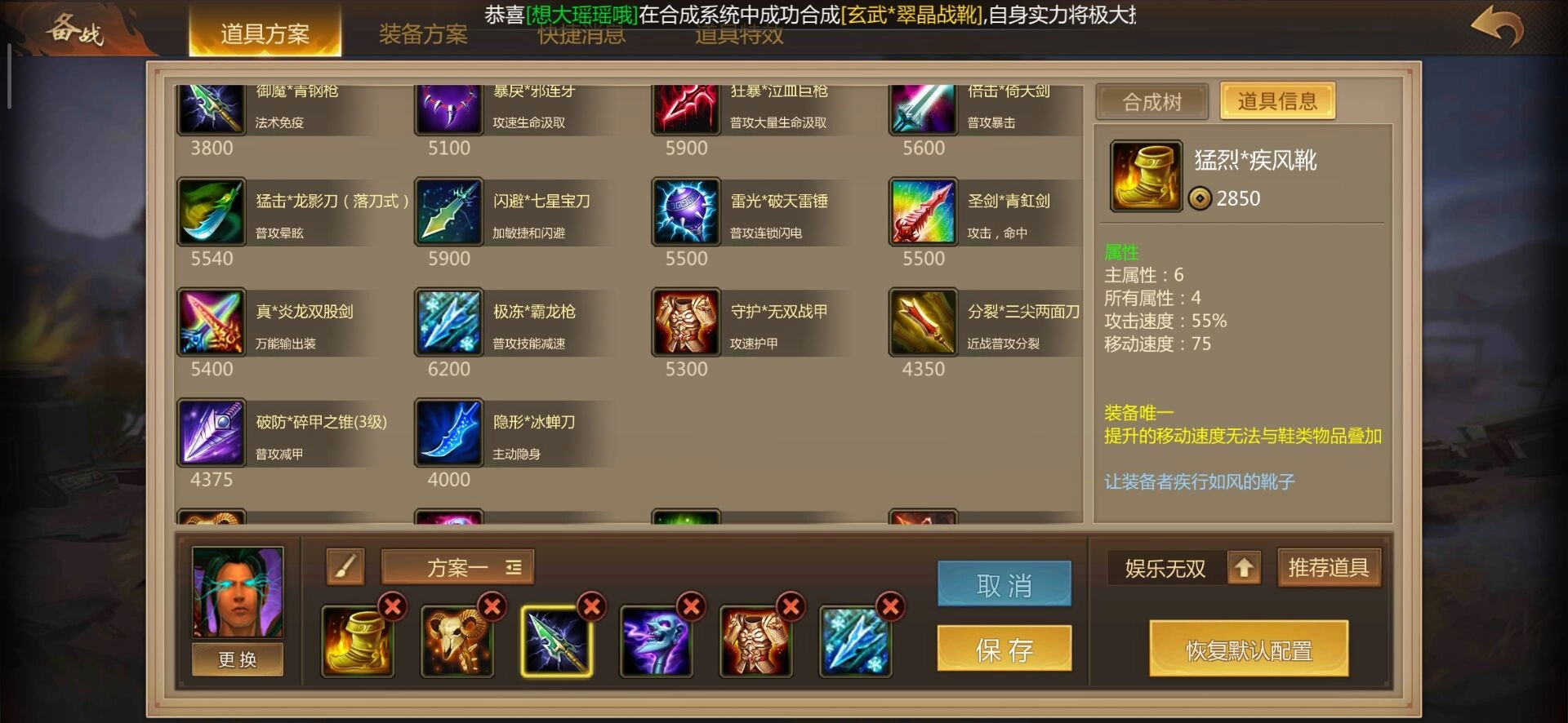 装备第一件推荐出双鞋子,优先选择疾风靴,它能提供移速和攻速加成,还能小幅提升属性力,让曹丕在前期既能高效清线,也方便回城补充状态。