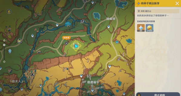 1. 当玩家触发“待种子萌出新芽”任务后,前往任务指定地点,此时玩家的岩龙兽便会开始挖掘。