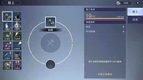 精工升级时,系统默认优先消耗低级材料,更换装备时精工经验能100%继承,这一设定相当良心。精工材料包含霜铁与金丝两类,且二者各有不同等级,不同等级的材料在装备提升的不同阶段发挥着各异的作用。