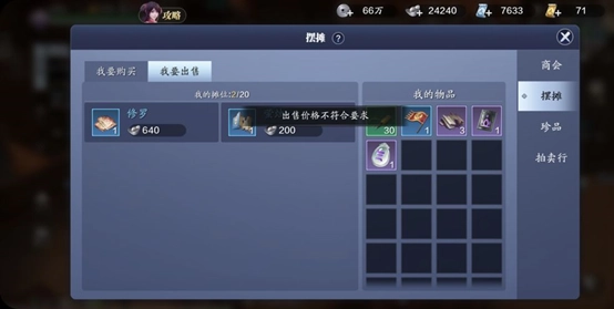 除了通过完成基本任务、话本获取材料外,普通商城和市集也能买到精工材料,只是这类材料每周都设有购买上限。部分身份玩法,像钓鱼、挖宝等,不仅能产出一定数量的精工材料,还能获得碎银;其中有些材料并非绑定状态,所以可以拿到交易市场出售,从而换取相应的银两。另外,我们也可以在交易市场购买其他玩家上架的精工材料,用来提升自己的装备等级。