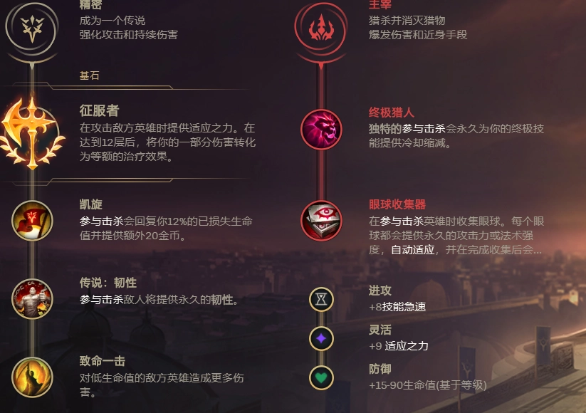 肉装狮子狗的天赋核心选择征服者,由于出装偏向肉装路线,天赋层面征服者能填补部分伤害缺口,而且叠满层数后的吸血特性还能提升狮子狗的续航能力。