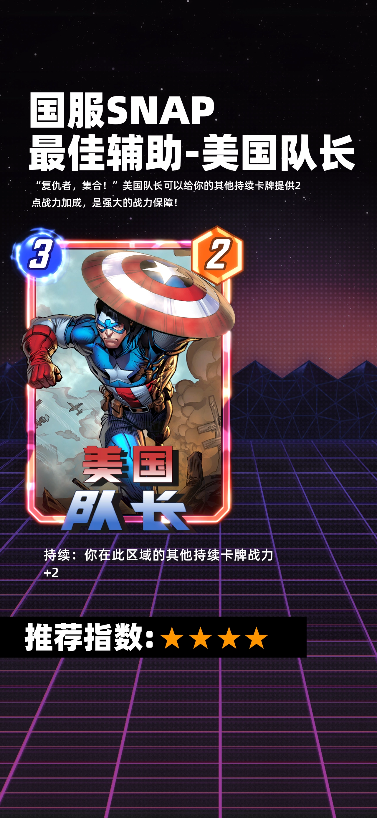 在美国队长所适配的持续卡组里,他无疑是至关重要的核心存在,一旦与狂攻策略相互配合,便能够激发出极为强大的战斗能力。