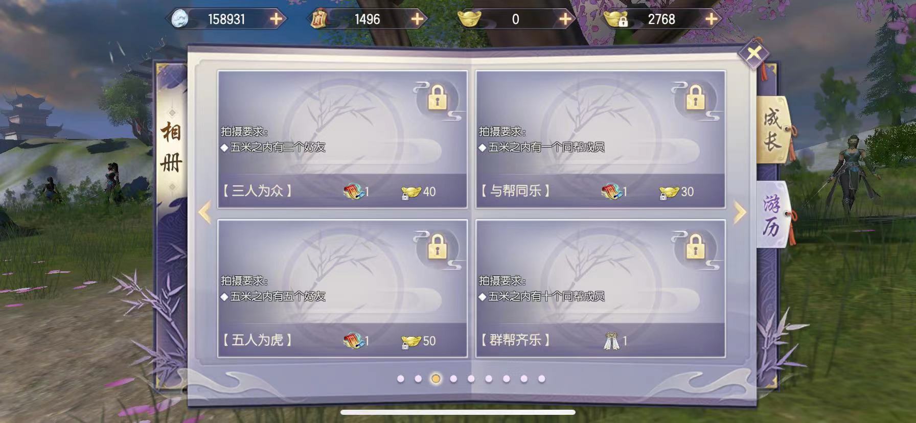 这个所谓的任务其实就是游戏里的相册任务,具体要求是玩家周围50米范围内得有10个同帮派成员才能拍摄,任务名叫“群帮其乐”。等玩家完成拍摄后,就能在相册里领取到醉流沙这份奖励了。