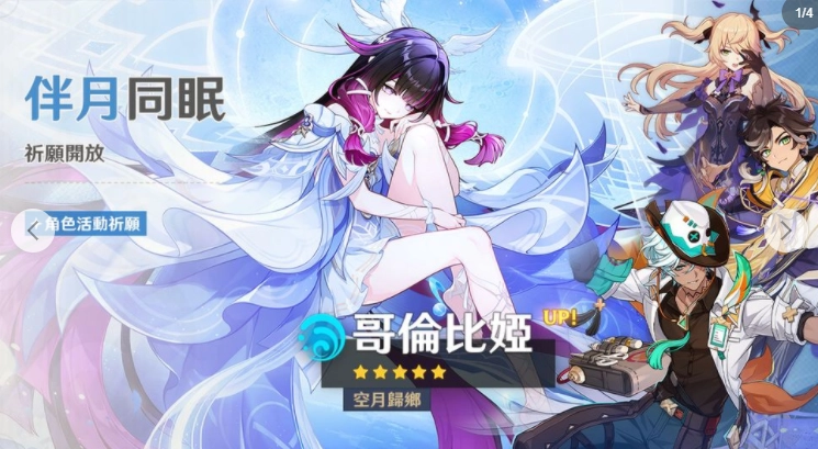 在「月之四」版本的活动祈愿里,第一阶段会开启哥伦比娅与伊涅芙的复刻卡池,第二阶段则将上线兹白的复刻,以及一位新的四星岩元素执灯士角色叶洛亚——她使用长柄武器,作战时会有一只信鸟相伴;与此同时,那维莱特也会迎来复刻。另外,那维莱特的全新衣装也会在商店进行限时折扣售卖。