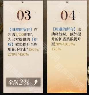 塑造3提升了库珀花环的基础护盾倍率,使其每回合的护盾量能增加约1200点