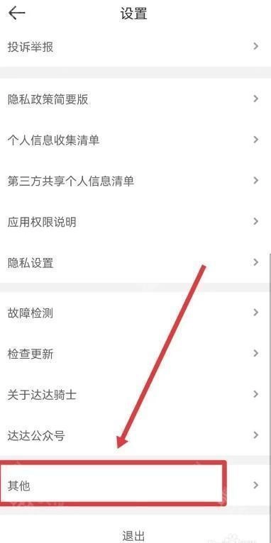 1、第一步是打开达达骑士app,接着进入设置页面,然后在设置页面里进入其它页面