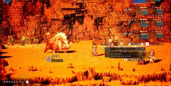 第一场战斗:巨牙野猪:靠近海茵特后,会立即触发与巨牙野猪的战斗。