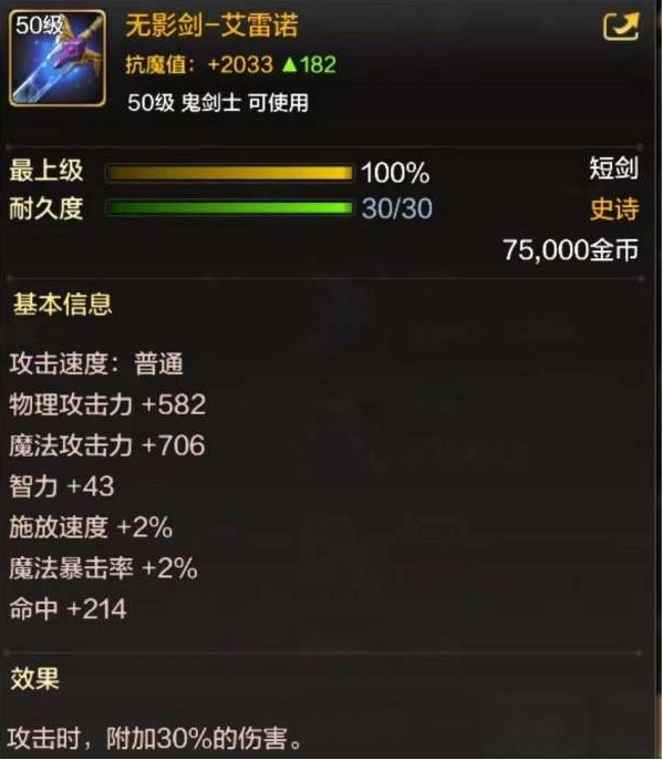 1. 具备30%的白字伤害,堪称最强的毕业武器。