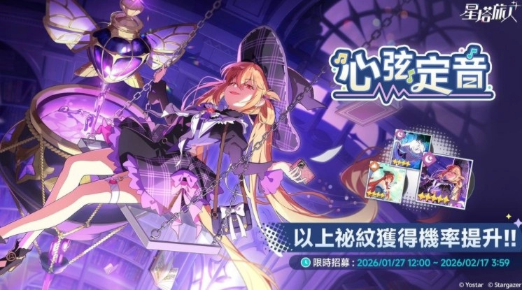 5星「魔女的鞦韆」等祕纹招募概率提升的限时招募活动「心弦定音」已于1月27日(周二)12:00开启。在本卡池中,当累计招募次数首次达到120次时,就能直接获得5星祕纹「魔女的鞦韆」*1。