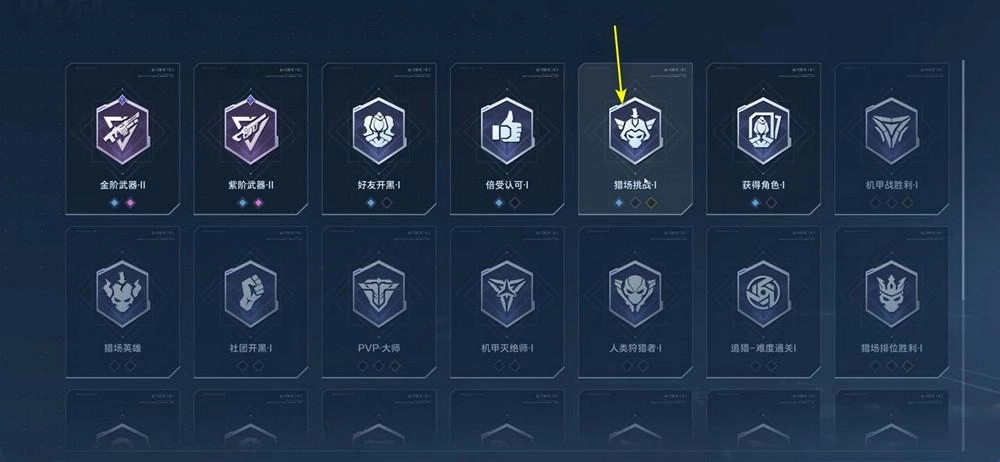 2、点击左下角的【成就>>>】->【猎场挑战】;