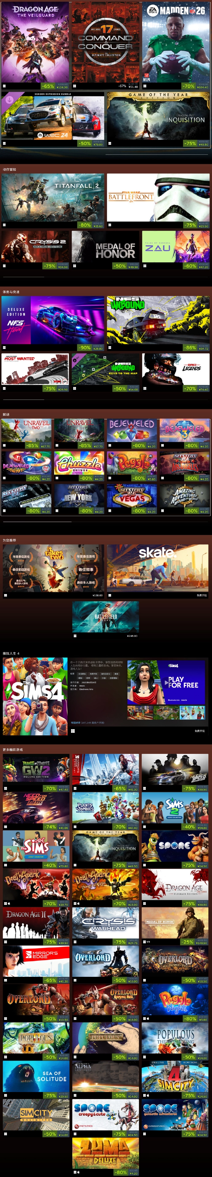 EA已在Steam平台启动春节特惠活动,活动时间从即日起持续至2月10日,玩家可享最高2折的超值优惠,旗下多款热门大作更是迎来了历史最低价。