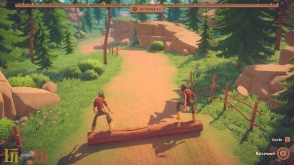 玩家操控伐木工前后移动来控制原木,操作时需遵循“两步向前,一步后退”的节奏。若始终朝同一方向滚动原木,它会加速到赛车般的速度,很容易失去平衡,务必留意这一点。