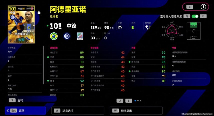 阿德里亚诺的增能属性为【射门 +3】,射门和脚下力量的增强让“梅阿查国王”再现充满暴力美学的射门!