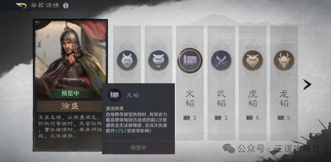 关于徐盛的阵容搭配,目前主流思路大致分为两类:一类是常规辅助路线,核心战法带固若金汤,但整体表现较为平庸;另一类则是全员枪兵的反击流派,且必须携带披坚执锐。虽然这套反击体系存在战法固定、兵种要求严苛的问题(不过S11赛季有虎符可以一定程度上缓解兵种限制),但经过我多次测试调整,终于摸索出一套强度尚可的反击马超阵容。另外需要说明的是,前瞻服目前已进入结算阶段,活跃玩家较少,导致可用战报数量有限,还望大家理解。