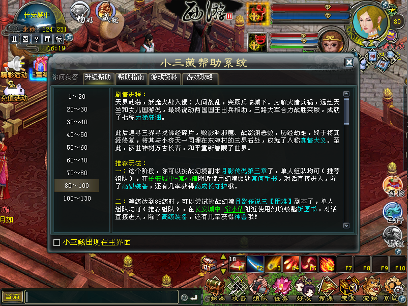 帮助系统(快捷键Alt+3)里包含了详细的游戏指南,覆盖了各个等级阶段的升级建议和玩法指导,能让玩家随时查看游戏攻略和背景设定。界面右侧的显示模式切换按钮,可以让玩家根据自己的需求在全屏和窗口模式之间自由切换,为不同的使用场景提供个性化的选择。