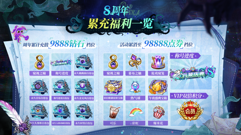 周年庆活动期间,玩家只要完成累计签到,就有机会赢取旧日歌剧宝箱、趣味表情包、限定称号等多样福利;而参与答题任务的玩家,还能领取专属的八周年特别礼物。