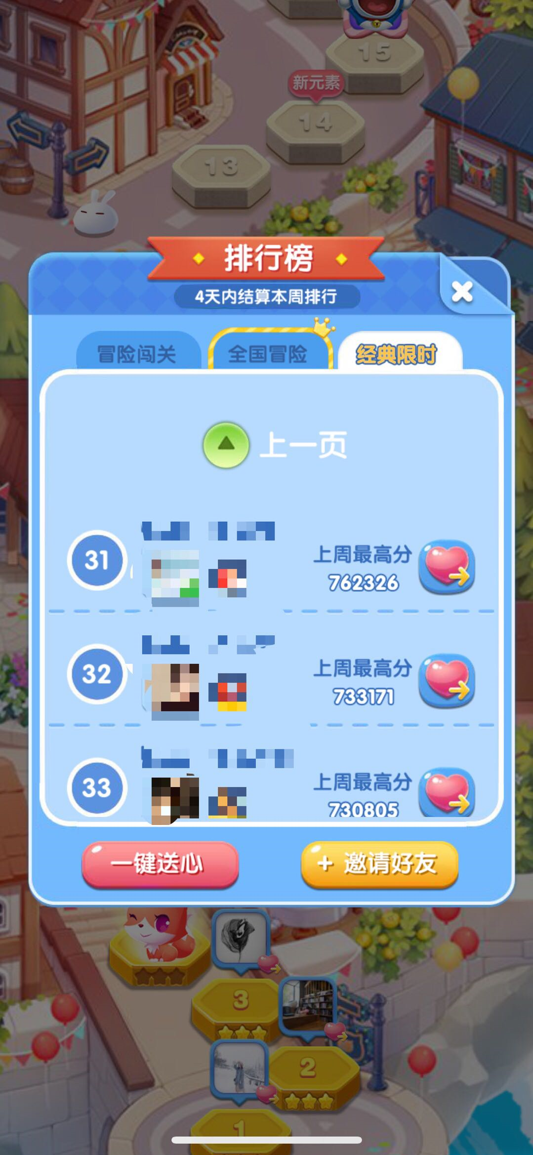 玩家既能独自挑战关卡,也能查看共同游玩的好友排名并与其PK。点击右侧的排行榜,就能看到好友的闯关数量。