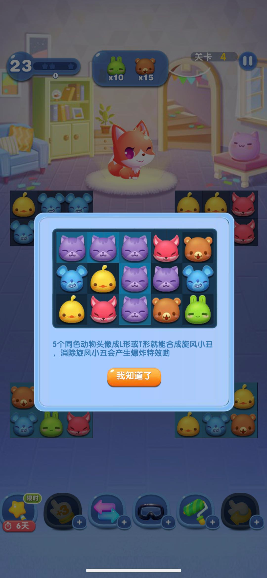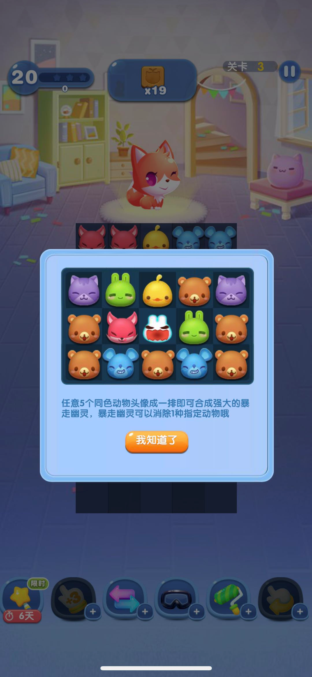 在消除操作时,不能随意进行配对,务必谨慎对待,尤其要留意那些能触发特效的关键步数。当五个相同的动物连成一排时,会生成一个暴风幽灵,将这个幽灵与任意一个图标交换位置,就能清除游戏界面上所有相同类型的图标。