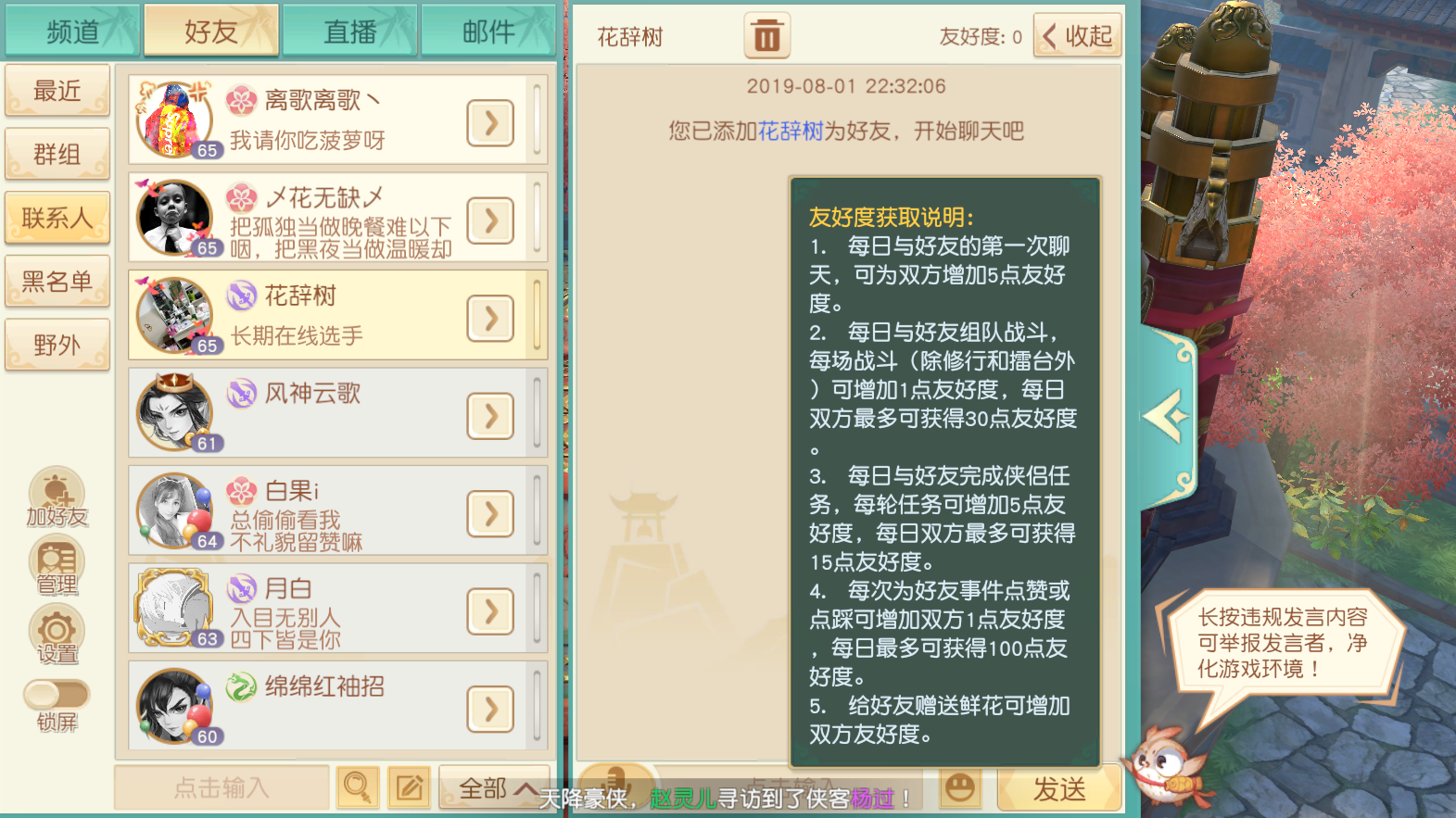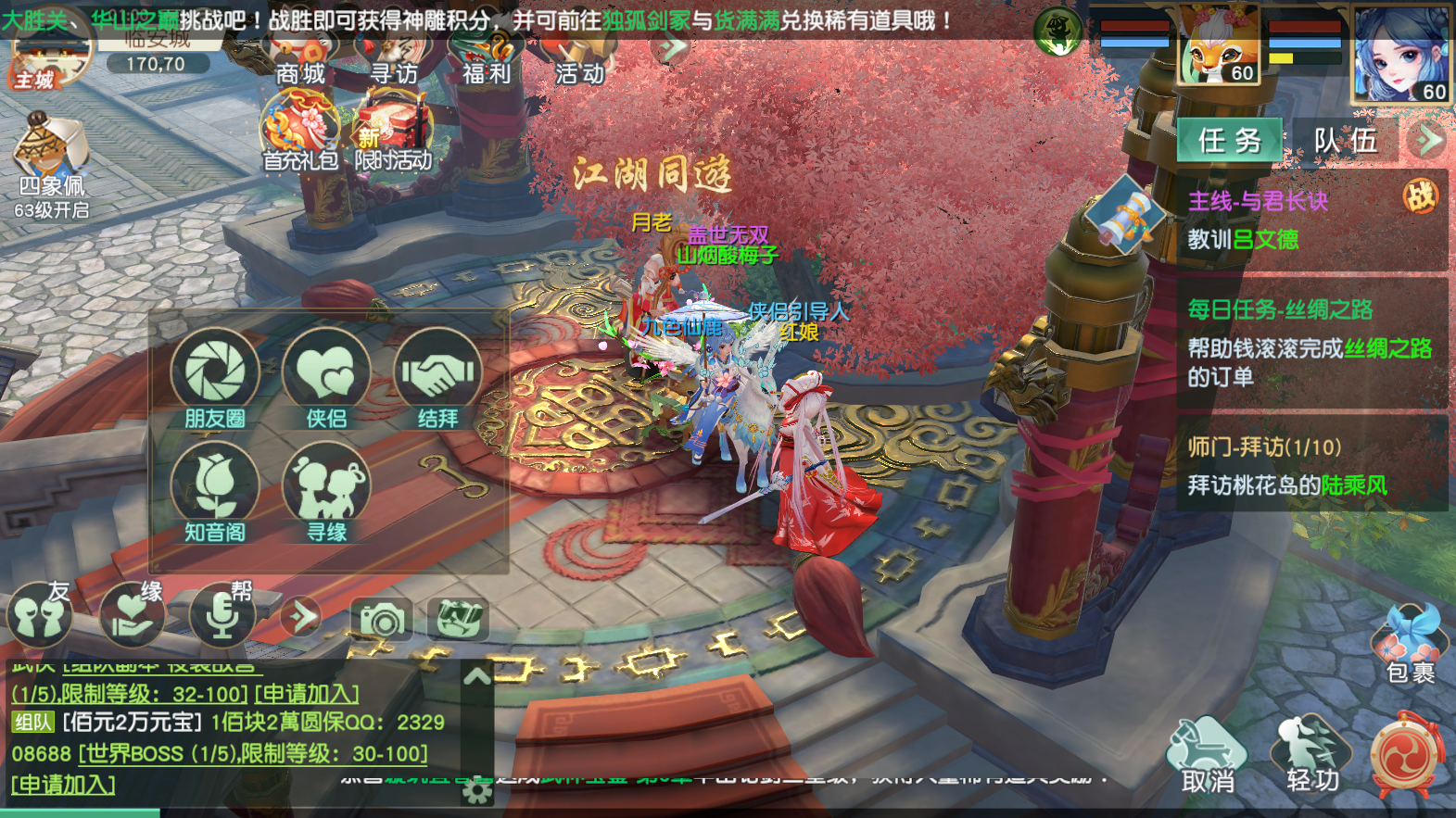 可以和好友结为侠侣,一起完成相关任务,这样既能提升好友度,还能积累侠义积分,用积分去商城兑换物品。