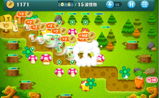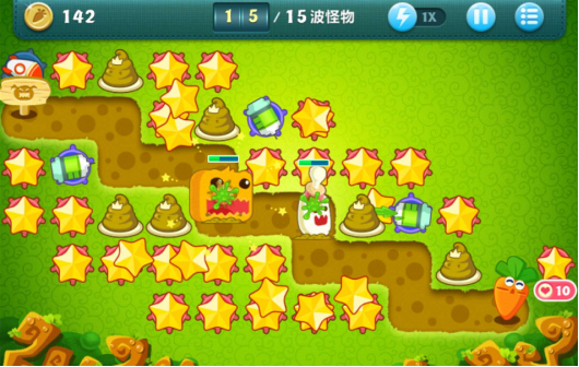 这一关中,通往萝卜的路径格外短,巨怪与飞行怪的出现频率相当高。由于总关卡仅有15关,玩家得在有限的关卡里完成炮塔的初步部署,避免怪物溜走。另外,关卡初始配备的道具数量不少,可要是不对提供的炮塔进行升级,其伤害值会很低,所以刚开始选择何种道具进行布置,就需要玩家好好思考一番了。
